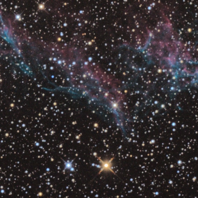 Ein Bild zur Diskussion meiner FWHM-Werte. Am Original mit Fitswork gemessen ca. 4,7 Pixel, entsprechend 6,11". Wurde von 3845 auf 800 Pixel in der Breite verkleinert. Das zweite Bild ist ein Crop aus dem unteren Bildteil in Originalauflösung.