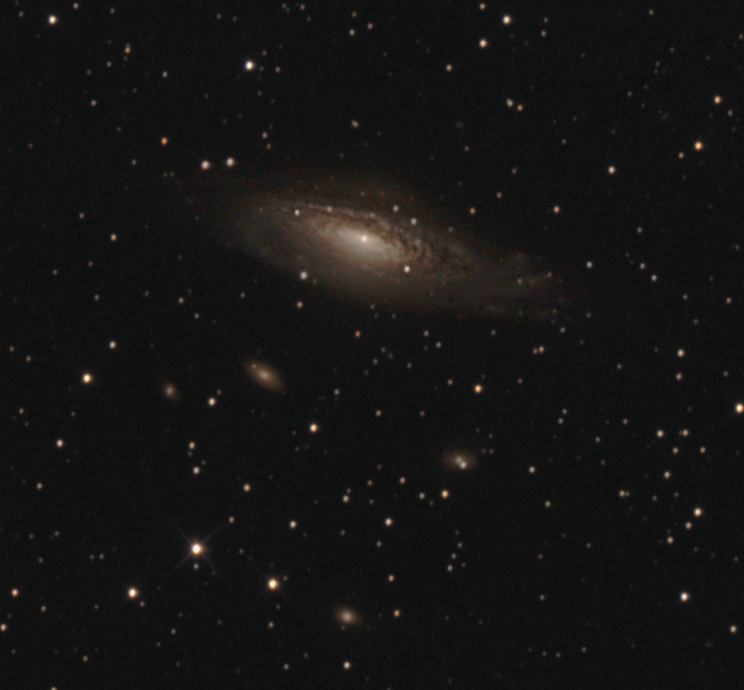 Bearbeitung: DSS (gestackt), Fitswork (Gradation, Ebnen Nebel) Gimp (selektiver Hochpass, selektive unscharfe Maskierung, selektiver Wavelet, Sterne und Galaxie unterschiedliches Gamma, übereinandergeblendet, beschnitten)