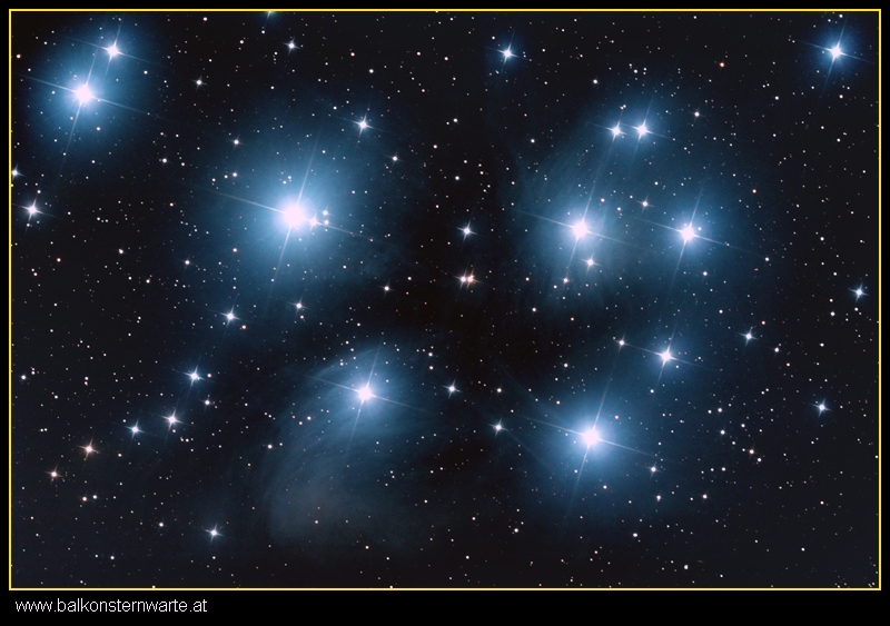 Plejaden vom 09.10.2010, Optik: Selbstbau Foto-Newton 200/800mm, auf CGEM, Kamera: Canon 450D ohne Filter, IDAS LP2, 8x480 sek. bei iso 1600 plus Darks, Nachführung: 80/400 Refraktor von Sky Watcher und ALccd5 mit PHD