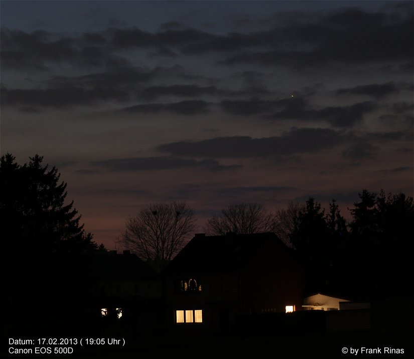 Hier sieht ihr den Planeten Merkur, der am heutigen Abend zwischen den Wolken im Westen zu sehen war. Aufgenommen mit einer Canon 500D.