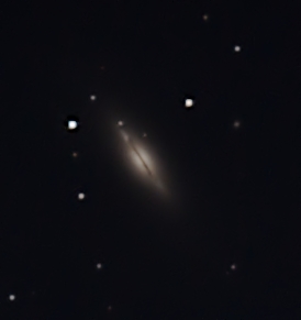 Die S0-Galaxie hat ein recht dünnes Staubband im Vergleich zur großen Bulge.