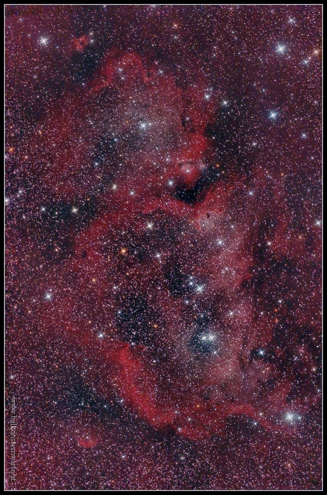 Optik: 150/600er Newton, Kamera: Canon 450D (Filter entfernt!!!), IDAS Filter, TS Korrektor, iso 1600, Darks, Flats, Bias verwendet, Aufnahmen: 125 Bilder mit 5/7/8 und 10 min, Gesamtbelichtungszeit: ca. 12h50min, Nachführung: 8x50 Sucher, ALccd5 und PHD, Montierung: CGEM