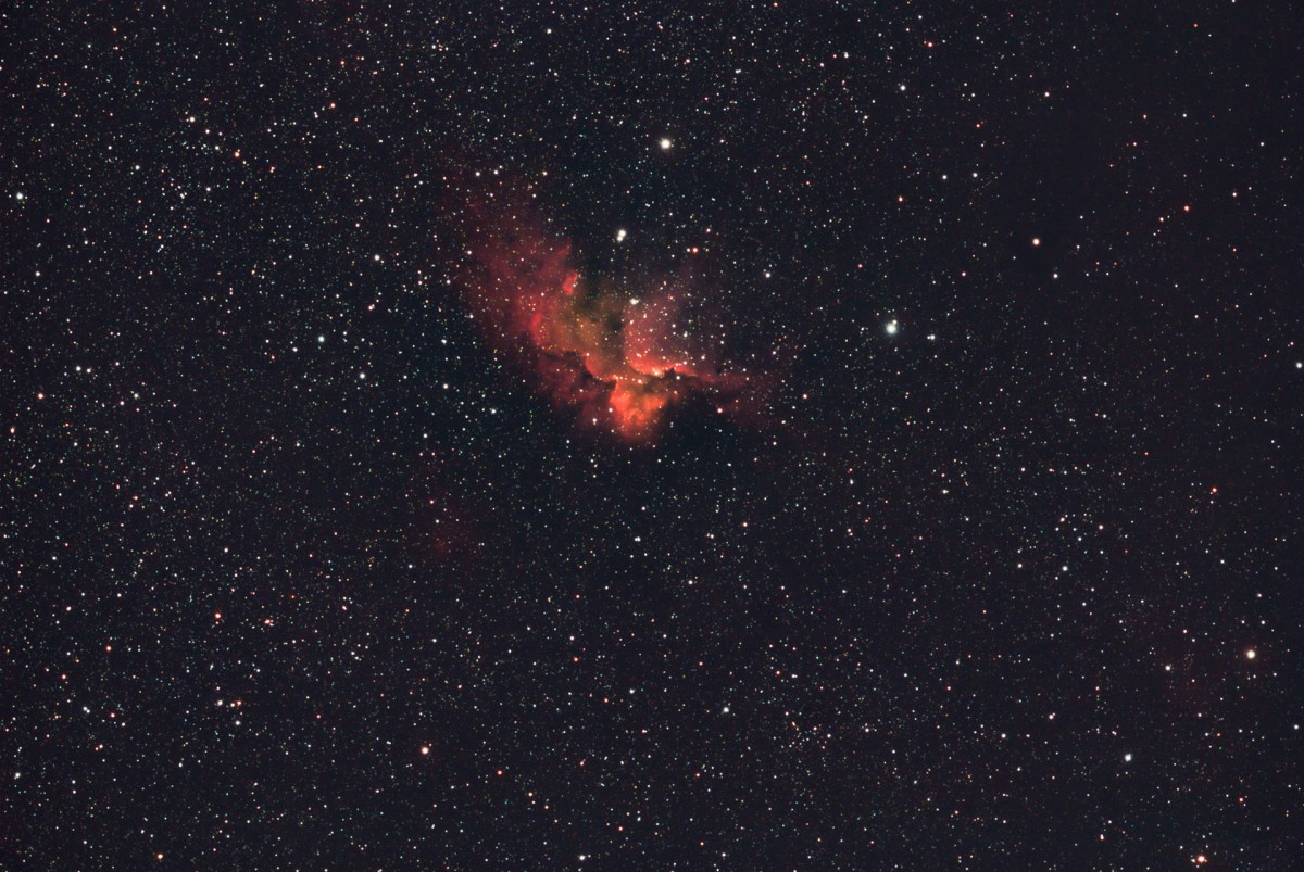 Hier sind nur 3 x 15 Minuten RGB und 4 x 20 Minuten H-Alpha eingeflossen. Dann war leider Schicht mit Himmel. Wie immer TS APO 600mm Riccari Reducer, EOS 1100 DA, CLS / H-Alpha Clipfilter