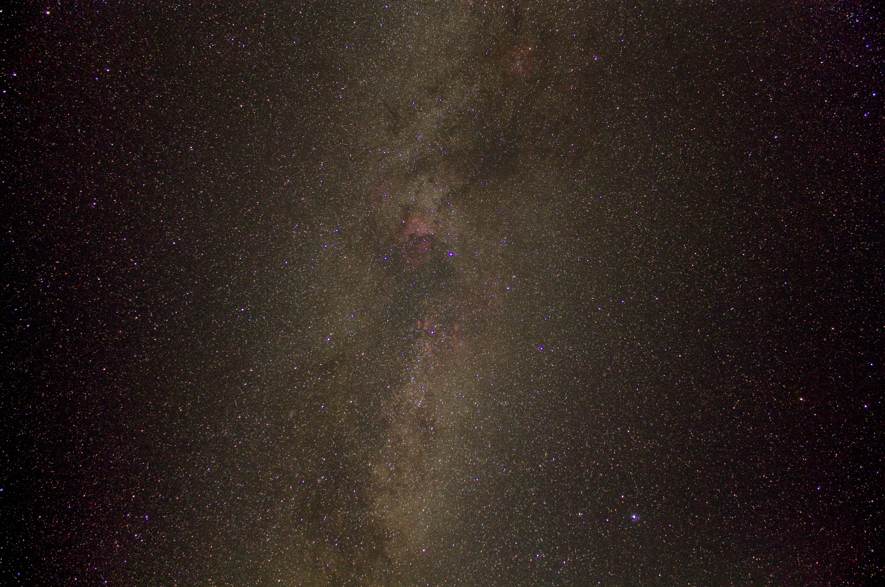Hier wollte ich mal das Stackingprogramm Sequator testen, das besonders gut für Weitwinkelaufnahmen (auch mit Horizont im Vordergrund) geeignet sein soll und habe dazu einige alte Weitwinkelbilder des Schwans benutzt. Die schwächen des 18-55mm Canon Objektivs bei F3,5 sind offensichtlich, aber insgesamt funktioniert das Stacken ganz gut. Kamera Canon EOS1100DA auf EQ1, keine Nachführungskontrolle, keine Korrekturframes.