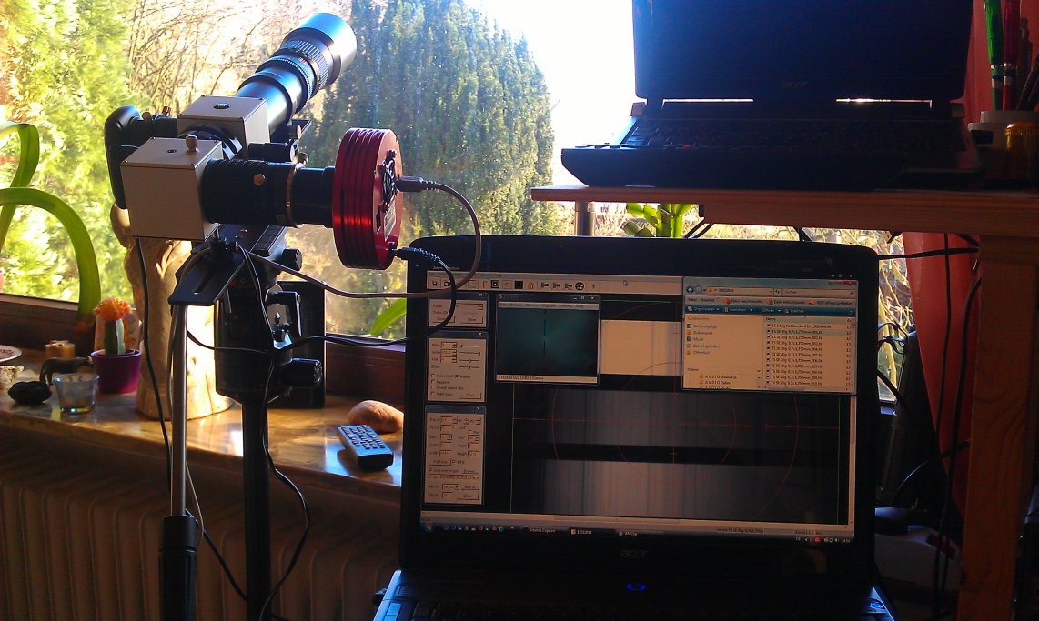 DADOS an f=500 mm Teleobjektiv im Test. Angekoppelt die TS SSI-Cam zur Spalbeobachtung sowie ATIK 320 e zur Aufzeichnung des Spektrums. Die 320 e wird offenbar nichtmehr produziert, war nur kurz am Markt. Ich bin froh, eine zu haben.