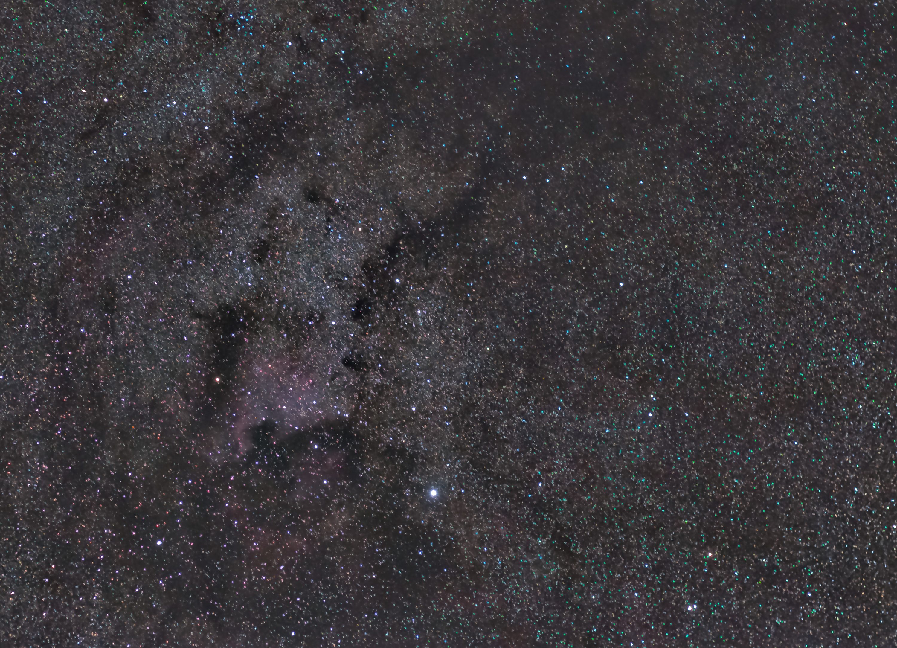 Nach der Bearbeitung war ich überrascht dass man mit so wenig Belichtungszeit ca. 48min und Lichtverschmutzung diesen Nebel herausarbeiten kann. Was mir nicht gefällt ist der Grünstich der kleinen Sterne besonders am rechten Rand des Bildes. Vielleicht habe ich es auch mit dem herausarbeiten des "roten Bereiches" auch übertrieben und deshalb wurden die andere Sterne grünlich.