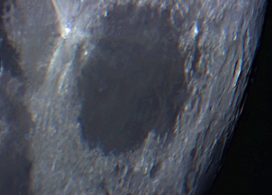 C 9.25 auf modifizierter GP-DX Kamera ALTAIR GP A0130c, 8 Bit in direktem Fokus 28 Bilder gestackt mit AviStack, bearbeitet mit GIMP