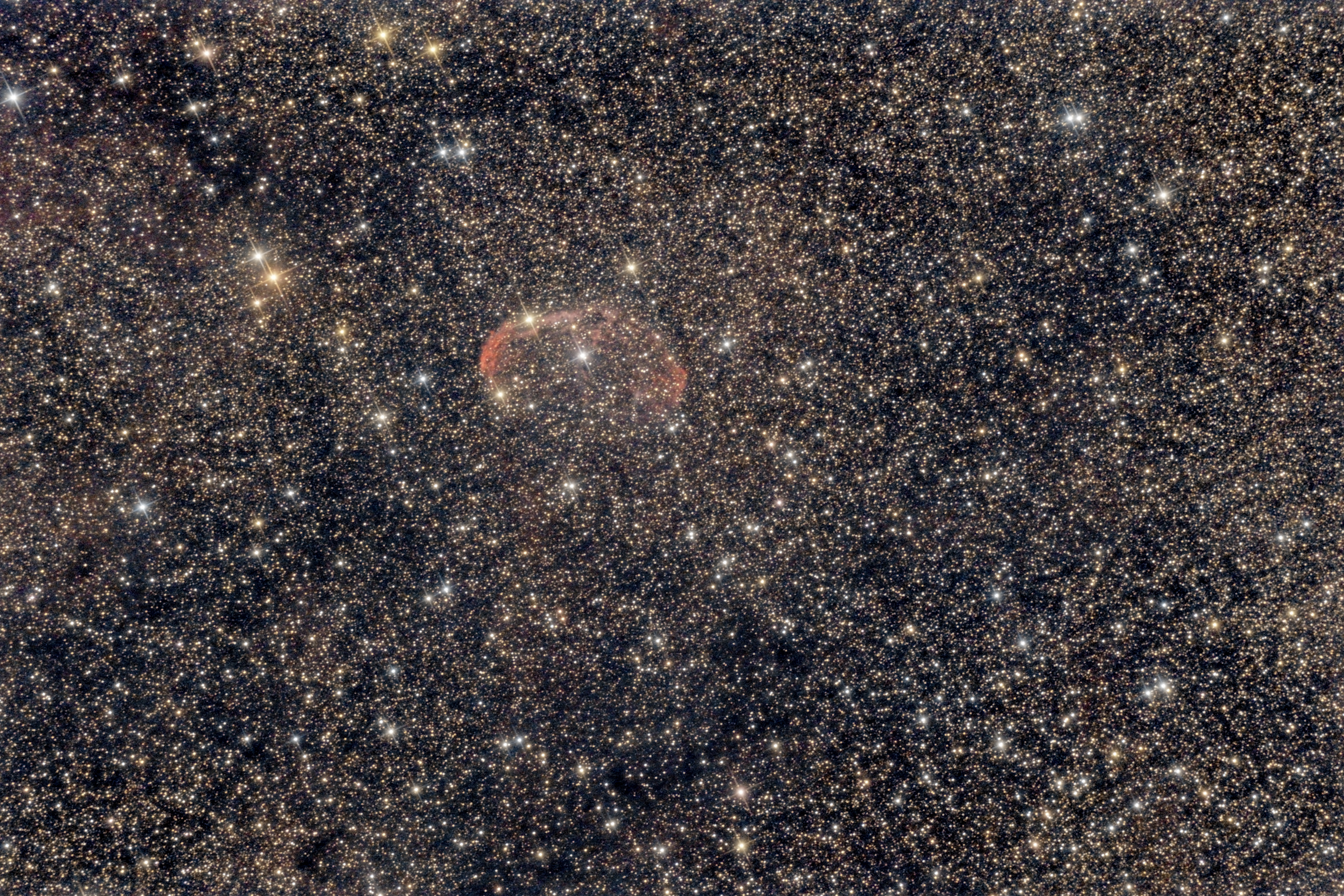 NGC 6888 mit runden Sternen in den Ecken