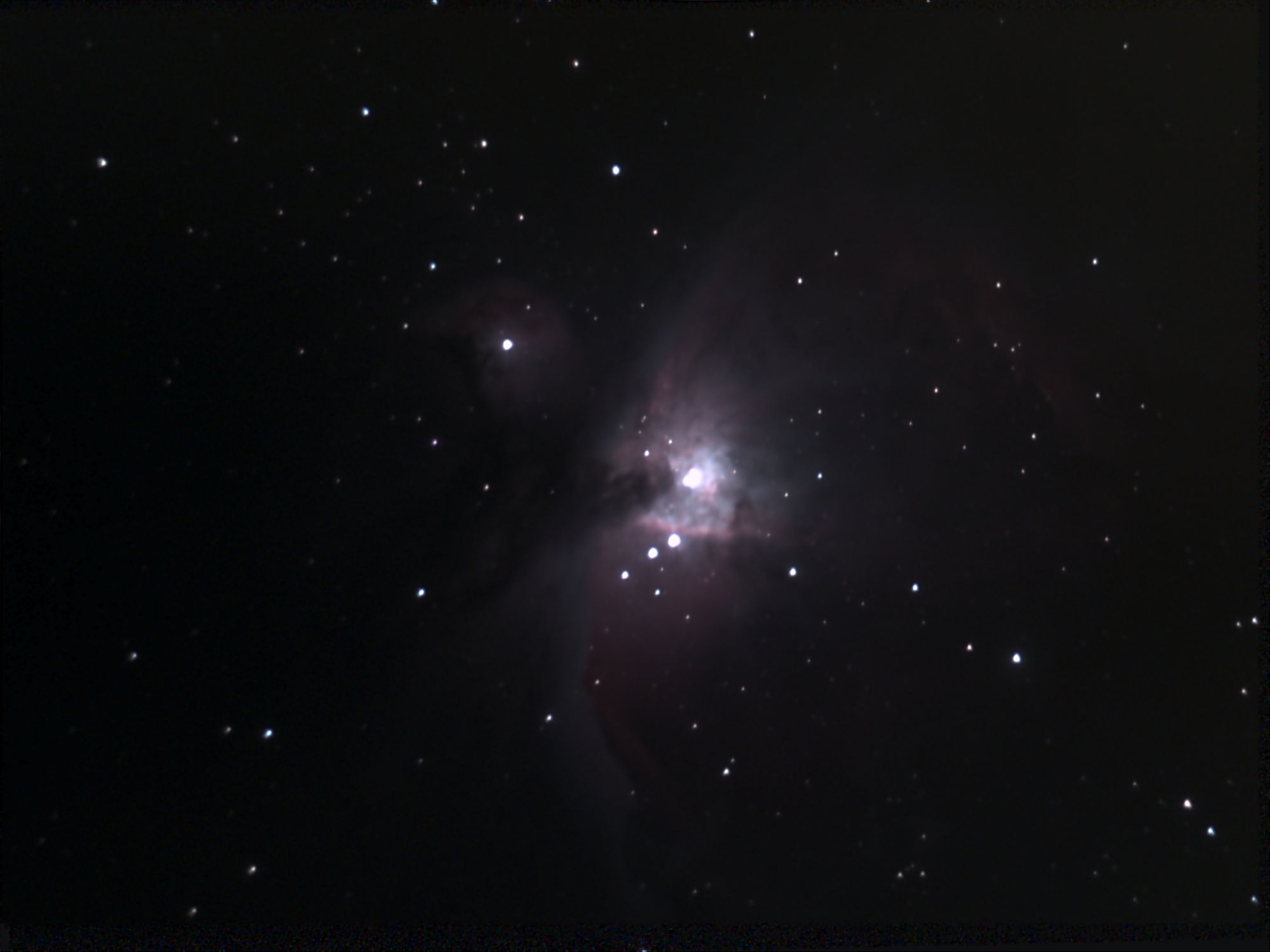 M42 im eVscope, 8 Minuten belichtet aus dem Düsseldorfer Stadtzentrum, unbearbeitet