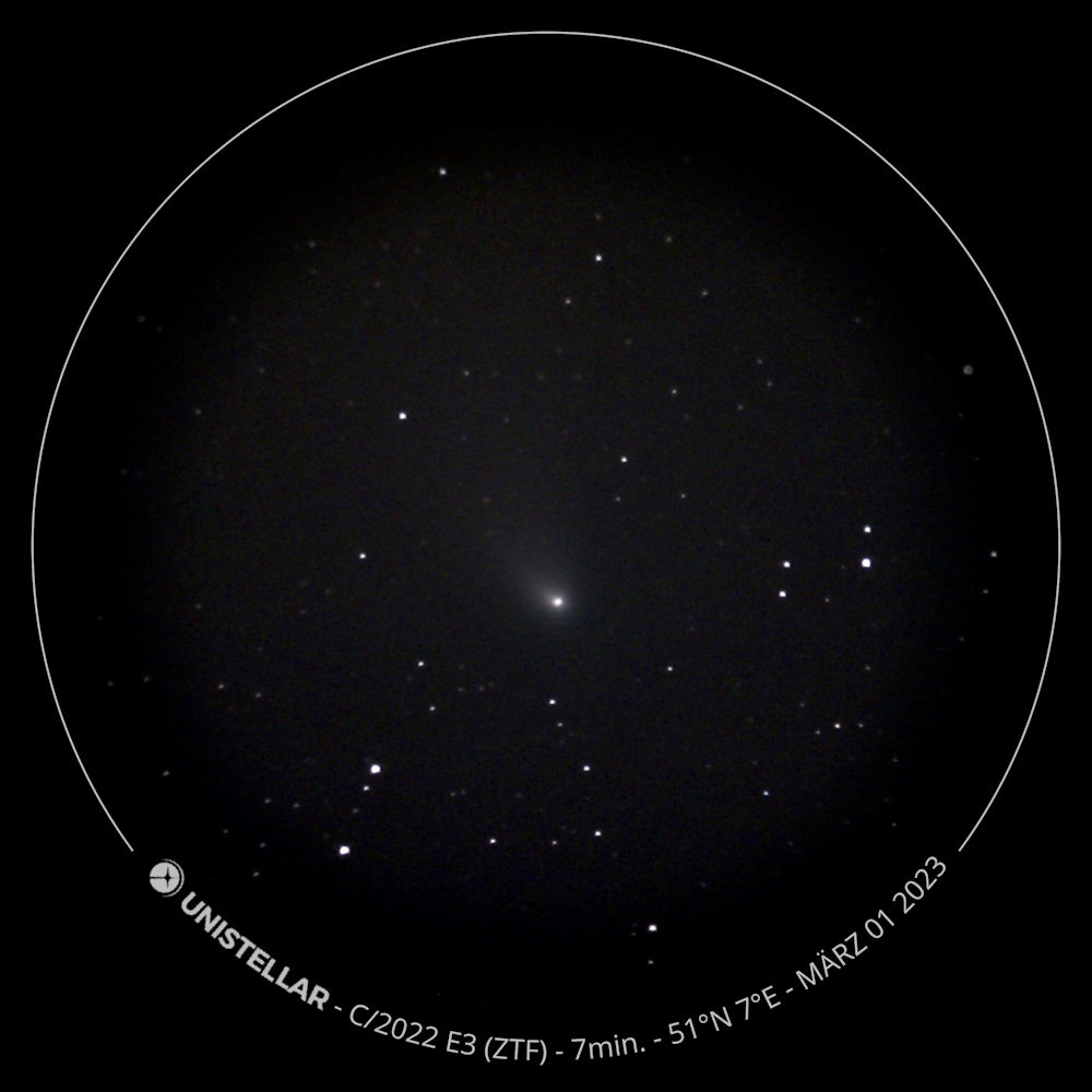 Vielleicht mein letztes Bild vom Kometen? Per eVscope2 vom Balkon in der Düsseldorfer Innenstadt aufgenommen.