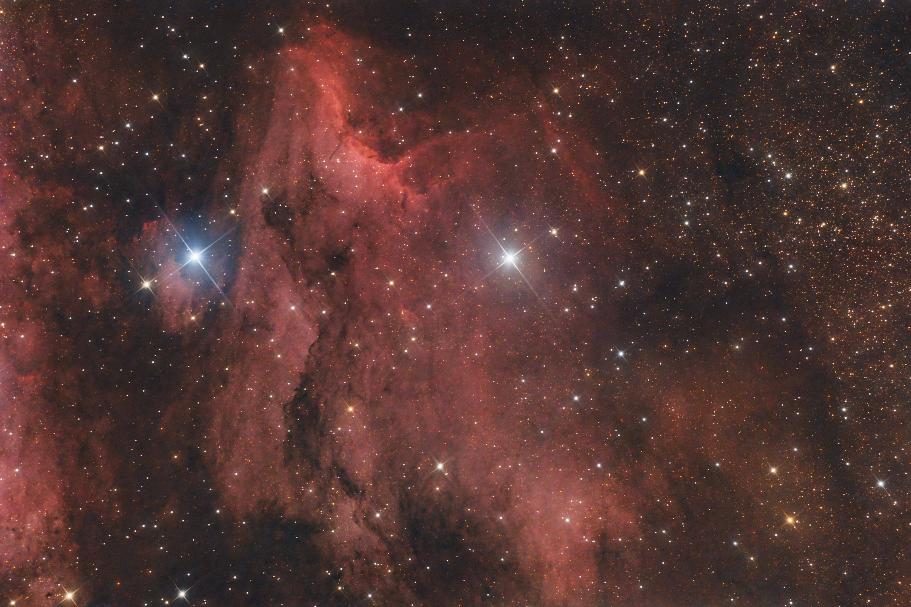 Aufgenommen in der Zeit zwischen 27.08. und 06.09.2024 115 x 187s RGB Kamera: Sony NEX-5Ra Teleskop: Skywatcher 130/650 PDS Bearbeitung: SiriL (+Starnet++), GraXpert, Affinity Photo (+NoiseXTerminator)
