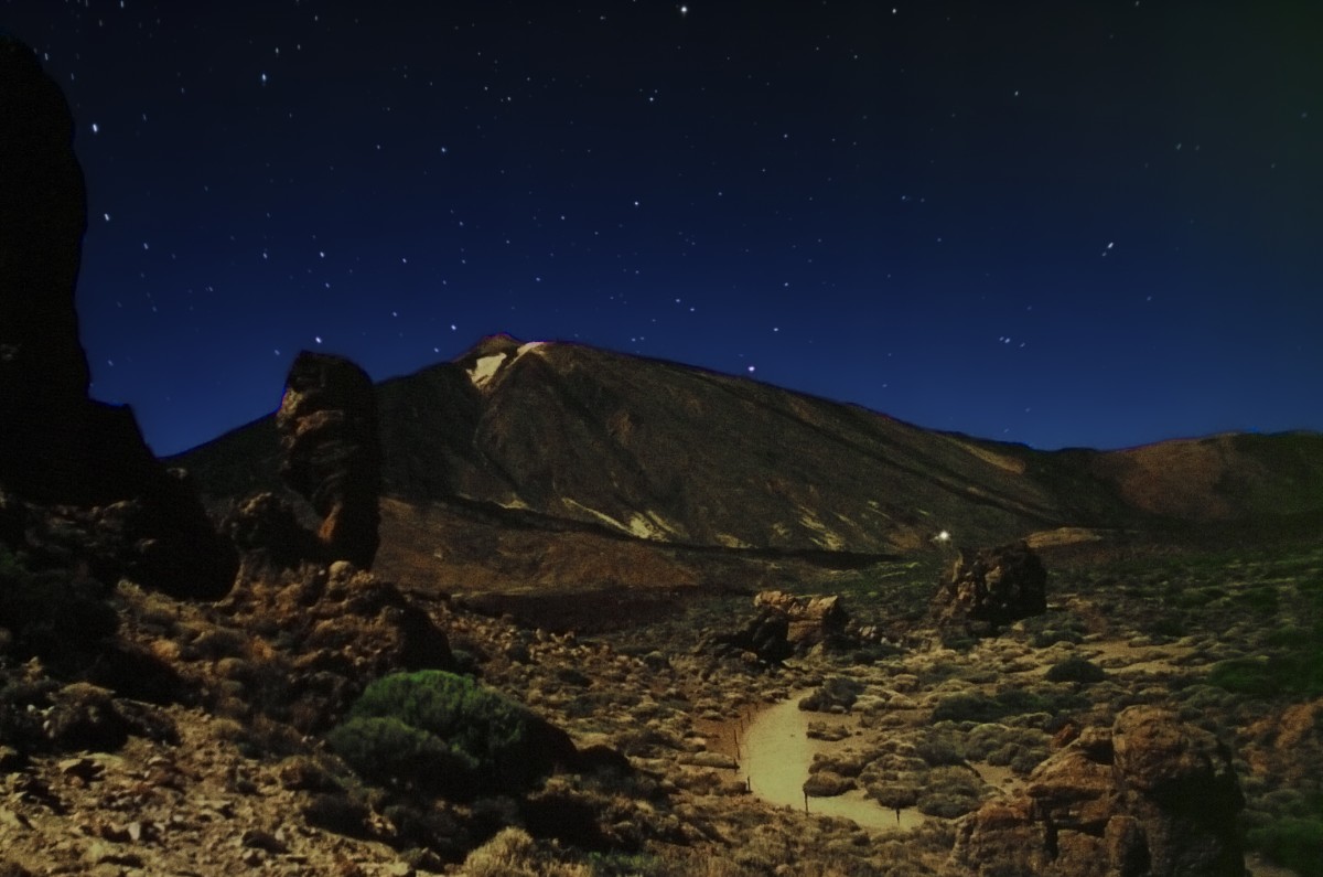 Drei Minuten lang belichtete Aufnahme auf 400er Fuji-Dia-Film, feste Aufstellung Objektiv: 2.8/20 Flektogon