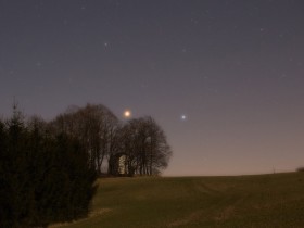 Abnehmender Mond und Venus von heute Morgen