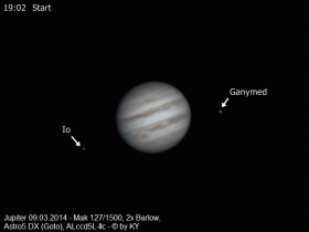 Animation Jupiter 09.03.2014 - Io, Ganymed und GRF
