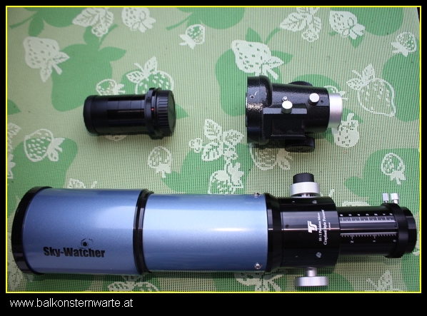 Beim Sky Watcher 80/400 Refraktor haben mich immer schon die verzogenen Sterne in den Ecken geärgert :evil: , da dies aber nur mit einem Flattener einigermaßen hinzukriegen ist musste ich mir so ein Teil wohl anschaffen. Nur da war das nächste Problem, das geht beim 1.25“ OAZ nicht wirklich, und bei dem ja die Ecken auch nicht richtig ausgeleuchtet sind entschloss ich mich kurzer Hand so ein Teil zu ordern. Der zweite Vorteil ist das ich da dann auch noch einen Filter montieren kann. Den IDAS LPSP2 wollte ich mir sowieso zulegen. :mrgreen: