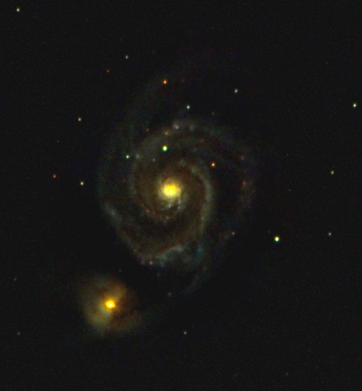 Ja der IDAS trägt sein Schäufelchen sicher bei, zumindest hab ich auch den Grünstich, wie bei deinen helleren Sterne, oberhalb des Zentrums und den in ca. 4 Uhr Stellung. Bei mir tritt das aber noch stärker auf, da sind die helleren Sterne außen rum rot/rosa und die schwächeren sind komplett grün, habe auch längere Belichtungszeiten verwendet. Gelb wird bei mir aber nichts. :?: