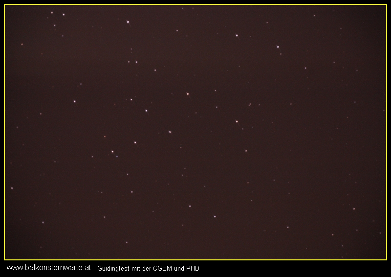 Ohne Guiding blieb der Stern fast am selben Fleck, nur ein ganz leichter Drift in RA war zu sehen, störte mich aber nicht.