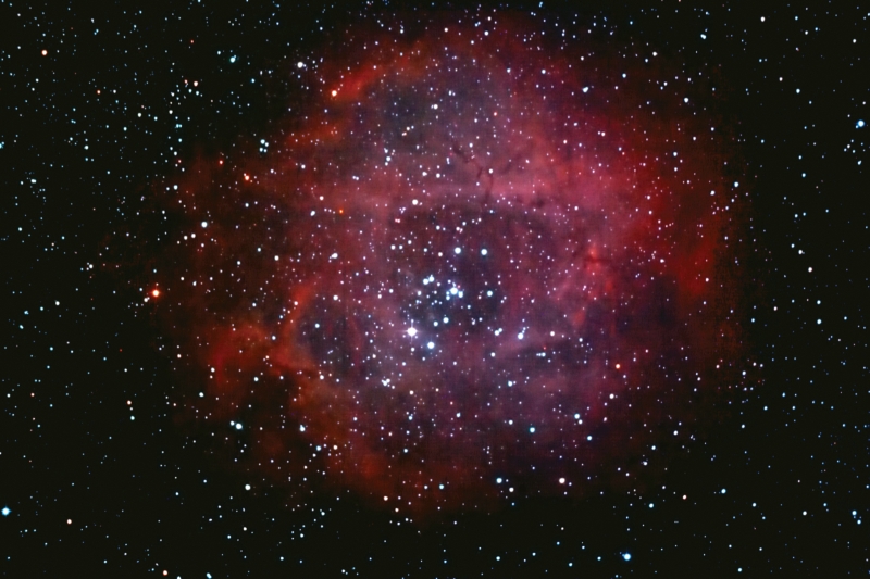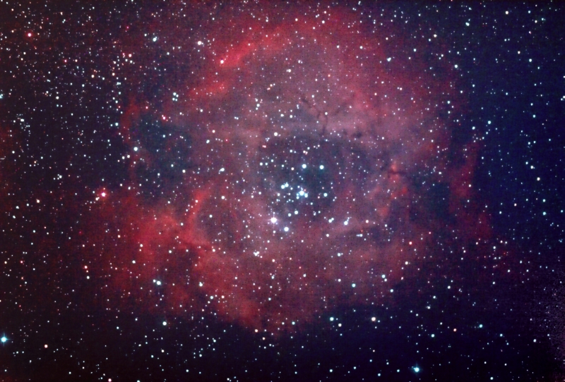 nachdem ich mir ein paar Abende mit Mars, Barlows, Okularprojektionen, Balkonseeing und einer maulenden Monti um die Ohren geschlagen habe, habe auch mal wieder etwas Deep Sky geübt. Dabei ist diese Rosette entstanden, die ich am 08.03.2010 aufgenommen habe. Die Monti läuft also wieder