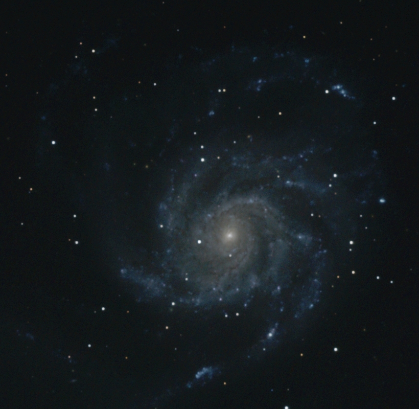 M101 habe ich schon ein paar mal versucht, aber nun hat das Wetter gut gepasst und die Ausrüstung war auch fit, so dass ich insgesamt 24 Bilder in der Nacht vom 6. zum 7. April 2010 schießen konnte. Keines davon musste ich weglassen.