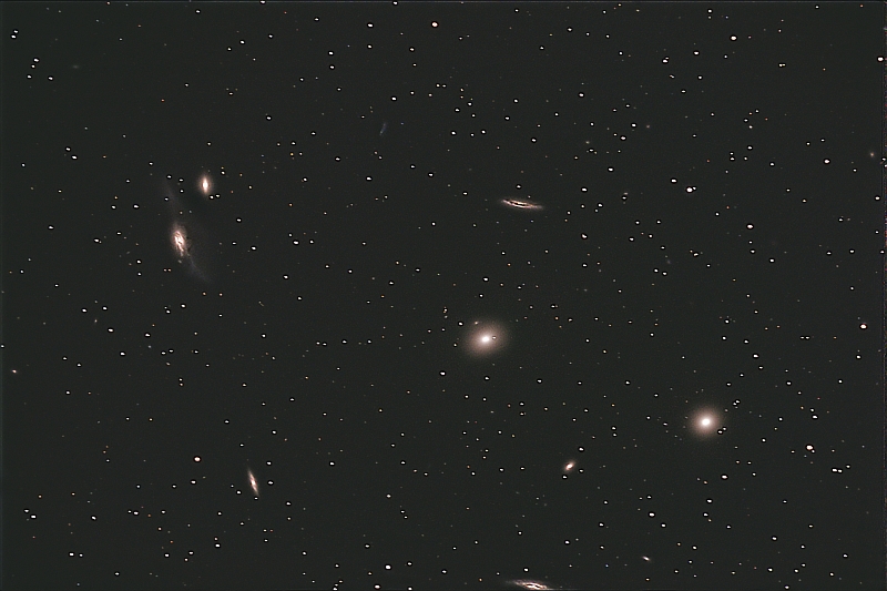 Als Beispiel dafür, dass nicht immer alls klappt, der Bereich um M84 und M86, bekannt als Nonett (9 Galaxien).