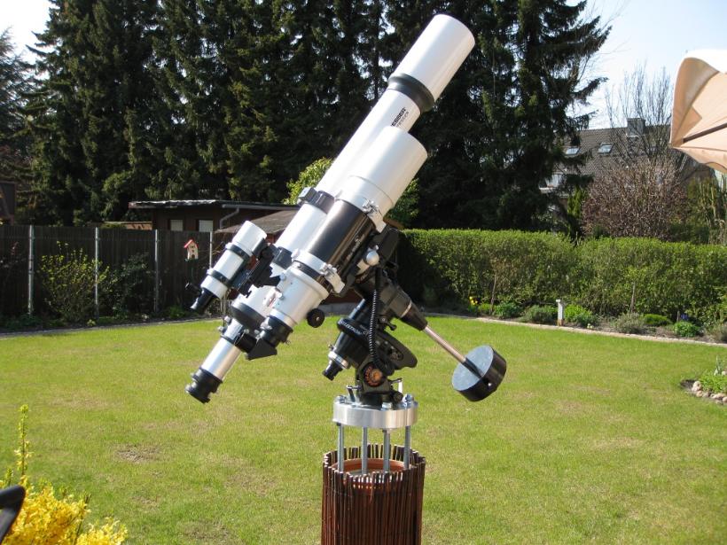 Eine Adapterplatte habe ich mir von Astro-Mechanik anfertigen lassen. Eine schöne Sache. Sehr präzise Ausführung. Gewindestangen hatte ich ebenso wie selbstsichernde Muttern bereits angeschafft, so dass ich nur noch die Adapterplatte benötigte.