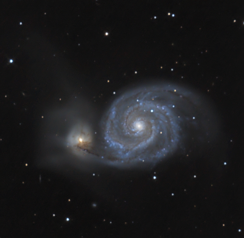 Wolfgang, da hast Du recht mit den kurzen Nächten; nach DEM Winter bin ich aber schon froh, immerhin jetzt im April noch viele klare Nächte gehabt zu haben. Gerade der M51 war in einer solchen entstanden, und wie man sieht, ist das einiges wert! Es war auch teilweise noch relativ kühl, so dass nicht das Rauschen wieder alles kaputt macht. Jetzt im Sommer wird das dann anders; bei Nachttemperaturen um die 15 Grad... :|