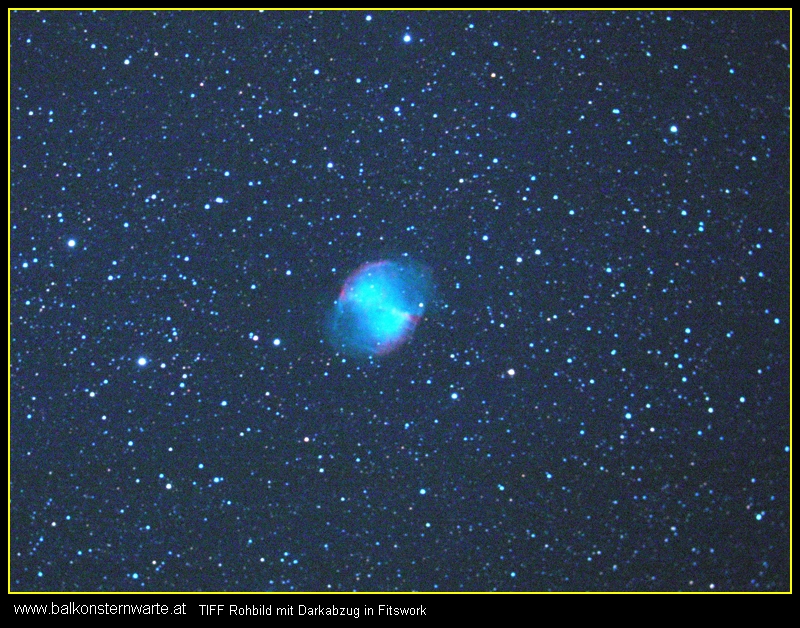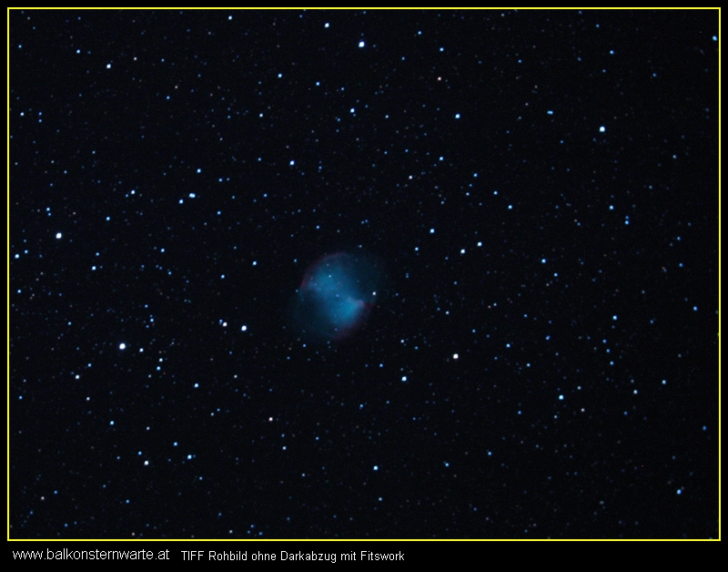 Die anderen zwei Bilder sind keine Summenbilder, also nur eins von 25 Stück. Wollte da nur mal zeigen wie arg das nach dem Darkabzug in Fitswork wird. Die Bilder hatte ich nach 0:00h gemacht. Vorher hab ich ja noch M57 abgelichtet, der aber noch schlimmer aussah. :?