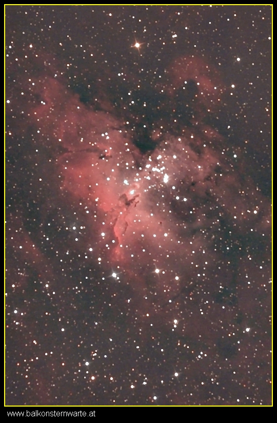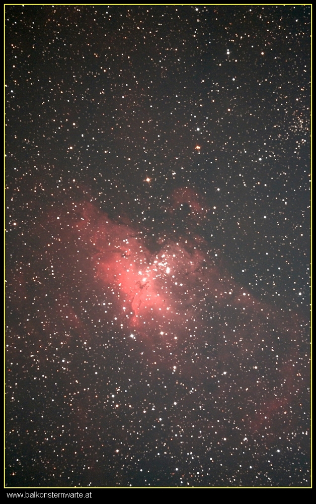 Gestern ging es mal wieder, na ja nicht lange denn der Mond störte mich schon noch ein bisschen. Hab dann noch mal auf M16 gehalten. Das letzte Mal war der ganze Himmel von einem Nebelschleier durchzogen, somit kriegte ich schöne aufgeblähte Sterne. Alles für die Tonne. Leider konnte ich diesmal nicht mehr und längere Aufnahmen machen da es ja noch relativ erst spät richtig dunkel wird, bzw. dann auch schon gleich mal der Mond aufging.