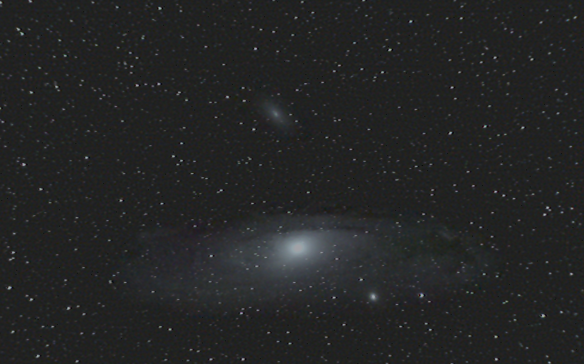 gestern trotz Besuch Firstlight meines Skywatcher Leitrohres 80/400. Meine erste Galaxie. 10 Bilder mit der EOS 400 D bei ISO 1600, Alles in Fitswork gestackt und bearbeitet. Nicht berauschend (rauschend) :mrgreen: , aber ein Anfang. Die Montierung war nur sehr grob ausgerichtet, weil mein Besuch nur Jupi sehen wollte... :D