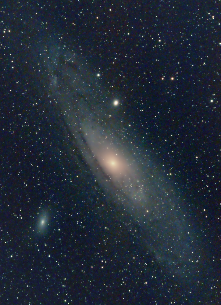 hier mal mein erster M31 aus 20 Rohbildern mit unterschiedlichen Belichtungszeiten. Von 60 bis 540 sek., bei ISO1600.