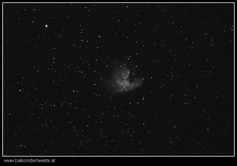 Gestern ging es dann gleich mal mit H-Alpha weiter. Da kam dann der Pacman alias NGC 281 an die Reihe. Ich machte 11 Aufnahmen a. 900 sek. bei iso 800 und Darks dazu.