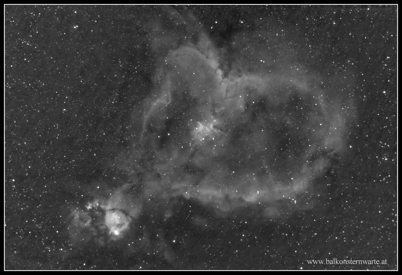 Na gestern war ja mal wieder eine klare Nacht, und der Mond war auch helle…..sehr helle, dachte ich mir machst halt ein wenig DS, sind ja tolle Bedingungen bei so schönen und die ganze Nacht blauen Himmel. Da ich ja mal wieder etwas mit den Schmalbandfiltern anstellen will hab ich mir mal den Herznebel ausgesucht.