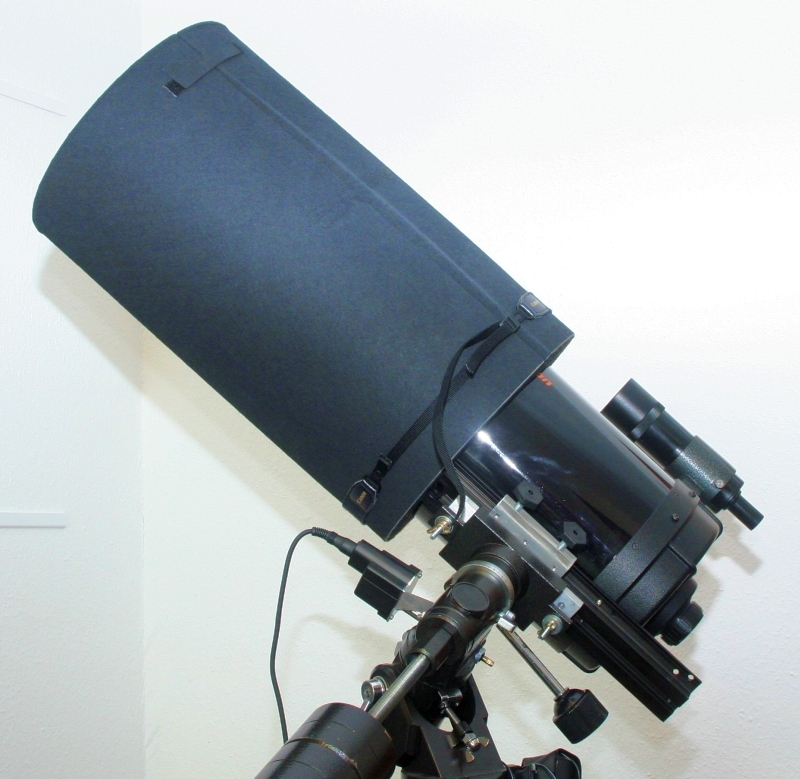 Es gibt nun 2 Möglichkeiten, das Zutauen der dem Himmelsobjekt zugewandten Optik-Elementen zu verhindern. Die erste wäre eine Taukappen-Heizung. Dabei braucht man aber stetig Energie. Die zweite ist eine Taukappe, die das übermäßige Auskühlen der Optik eben auch ohne Heizung verhindert.