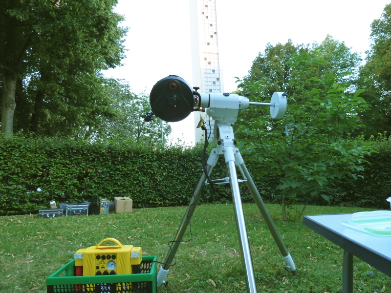 Da mir der Aufbau der Montierung, das Auskühlen des C8 und der komplette Aufbau wichtiger waren als das Einnorden, habe ich einfach darauf verzichtet. 8)