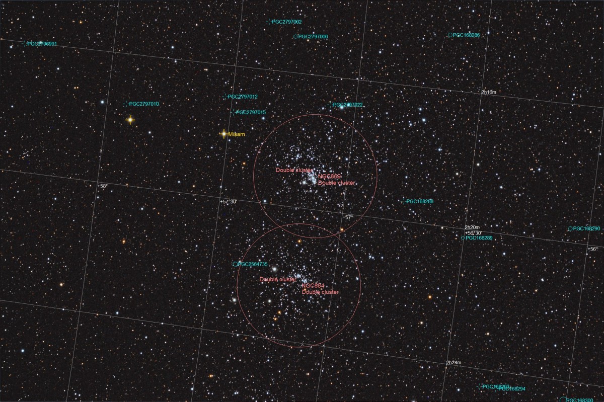 angefixt durch Schubis Doppelcluster habe ich meinen auch noch mal angefasst und die Sternfarben nach G2 Sternen kalibriert.