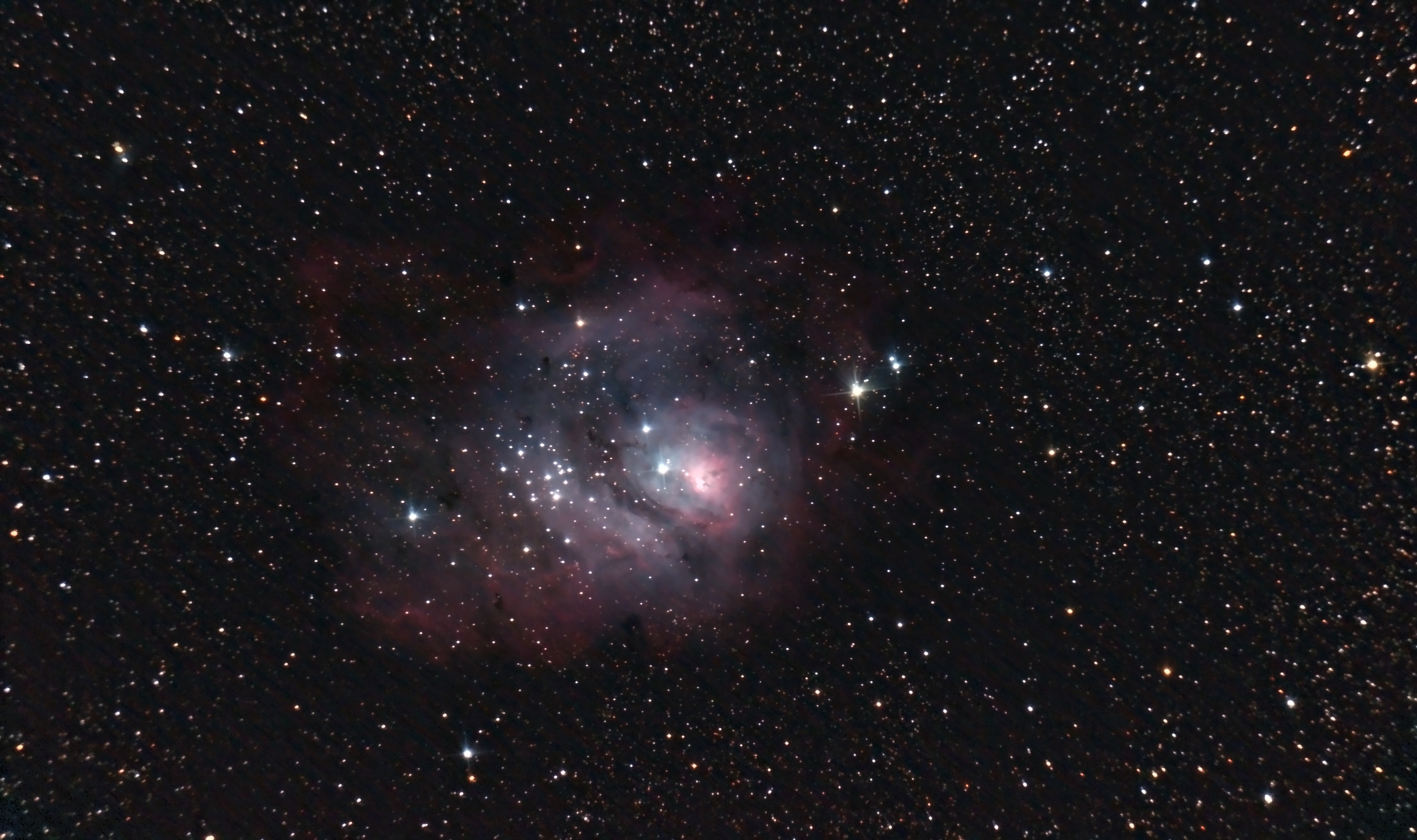 Rohbilder gefunden um den Umgang mit der EBV ein bisschen zu üben. Da das Wetter im Moment nicht mitspielt bleibt einem ja fast gar nichts anderes übrig. Hier mal meine Version von M8, dem Lagunennebel. Genutzt habe ich DSS und Fitswork. Kritik ist sehr willkommen.