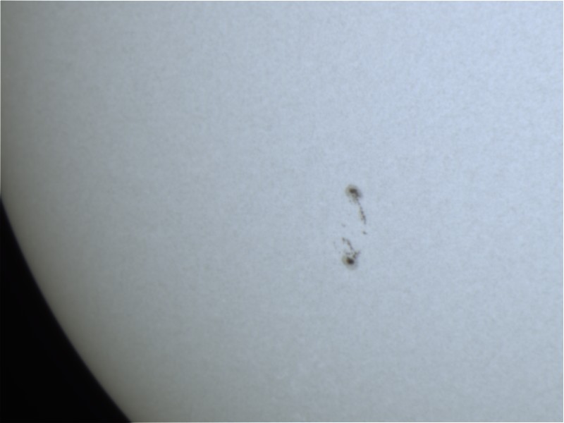 An unserer Schule läuft gerade Projektwoche und ich widme mich mit 15 interessierten Schülern dem Thema Sonne. Mit unseren begrenzten Mitteln (H-alpha Beobachtung ist leider nicht möglich) haben wir heute die aktuelle Fleckengruppe (2644) abgelichtet und hoffen dies bis Freitag täglich machen zu können. Davon erhoffen sich die Schüler die Drehung der Sonne nachweisen zu können.