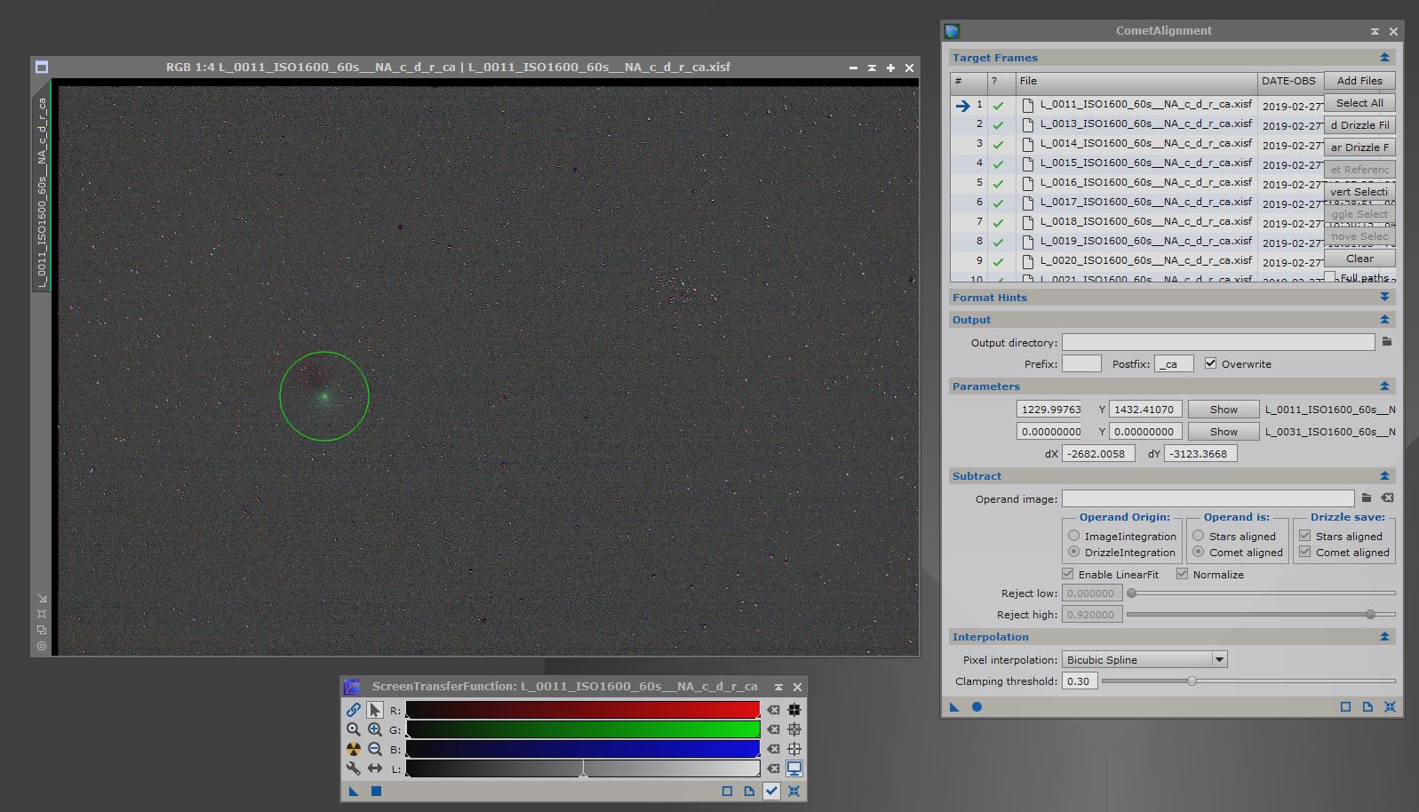 am 27.02. hatte ich klaren Himmel und habe mich zwischen 20 und 21 Uhr an den Schnelläufer C/2018 Y1 gewagt. Ich habe eine kurze Belichtungszeit von 60 Sekunden bei ISO1600 gewählt, damit der Kern nicht vollständig weichgespült wird.