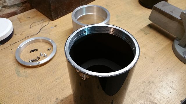 Und weil das Gewinde am Tubus auch nicht mehr so intakt war, habe ich gleich ein Passring für den Tubus hergestellt und habe ihn eingepresst, an den Stellen kommen noch neue Löcher rein und Gewinde geschnitten. Durch Reflexe muss noch geschwärzt werden und fertig.