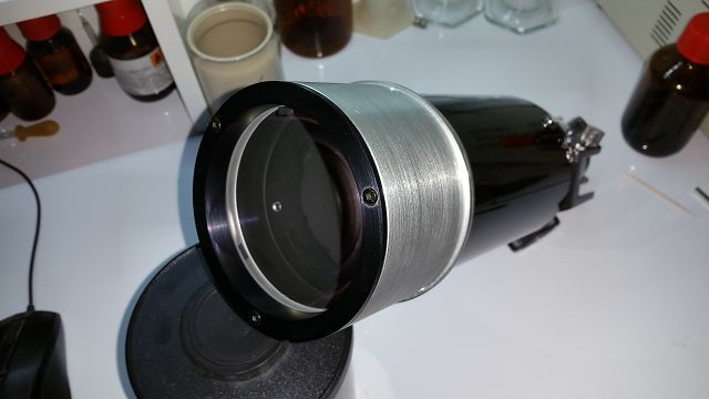 Ich hatte mir für Deepsky auf dem Feld ein 80/400mm von Skywatcher gekauft, auf die Monti drauf und loslegen wollte aber nicht so recht, musste leider bei ein Sterntest feststellen das der kleine Refraktor Astigmatismus und Koma aufwies, das hat mich ungemein gestört und geärgert. Und was ich auch noch feststellen musste das die Fassung seitlich viel Luft zu den Linsen hatte und sich seitlich verschieben konnten. Man könnte durch ein Papstreifen ausreichend ausgleichen das ist doch aber auch keine Lösung. Was machen? Es musste eine neue Objektivfassung werden, also fasste ich ein Entschluss bestellte mir Rohmaterial und stellte eine neue her.