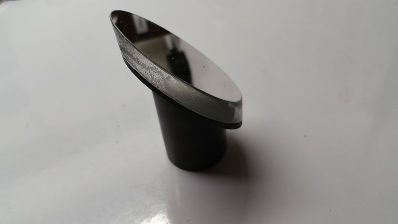 Drehmaschine und bearbeite den Rand, aber um das zu machen muss die Platte größer sein als der Fangspiegel ( 47 mm), dann wird vorsichtig abgedreht nicht zuviel da die Schneid-kräfte vom Meißel sonst zu groß werden und sich die Platte verziehen kann.