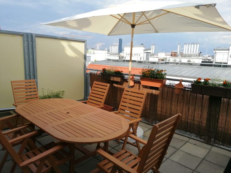 Und hier noch ein Foto meiner Dachterrasse im Sommer mit Blick über die Dächer von Wien