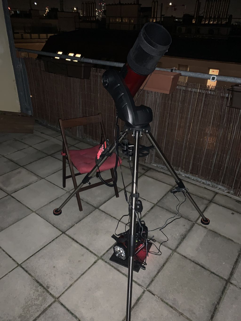 SkyWatcher Mak 127/1500 mm auf Star Discovery GoTo azimutal Montierung - im Einsatz auf der Dachterrasse