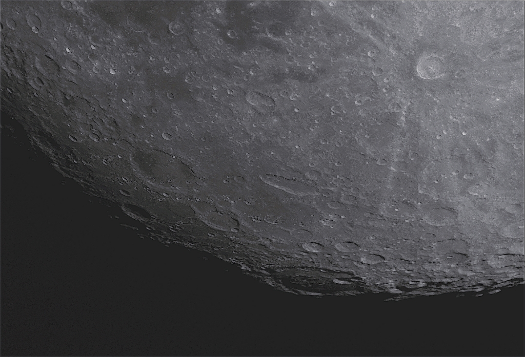 Aufgrund der günstigen Libration war ganz im Süden der Krater Bailly, m[b]it 300km Durchmesser der größte seiner Art auf der Mondvorderseite, in voller Pracht zu bewundern. Im Norden von Bailly trifft man auf den elliptischen Krater Schiller. Das Kratertrio Wargentin, Nasmyth und Phocylides erstreckt sich nordwestlich von Bailly und dem Verlauf weiter folgend gelangt man zum Krater Schickard. Im nordöstlichen Teil des Fotos tritt Tycho mit seinem Strahlensystem deutlich hervor.[/b]