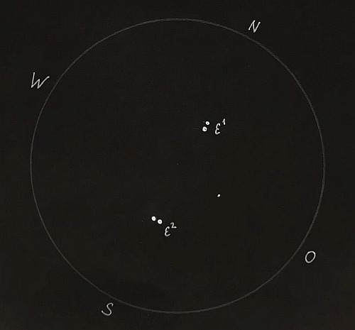 Das Mehrfachsystem ist 160 Lichtjahre von der Erde entfernt und besteht aus den beiden 209" entfernten Komponenten ε1 und ε2, die selbst wieder Doppelsterne sind. Der nördliche Doppelstern ε1 ist 5 mag hell und wird in einer Distanz von 2,3" von einem 6 mag hellen Stern begleitet. Das Doppelsystem ε2 besteht aus zwei fast gleich hellen Sternen - 5,2 und 5,5 mag - die sich in einem Abstand von 2,4" umkreisen.