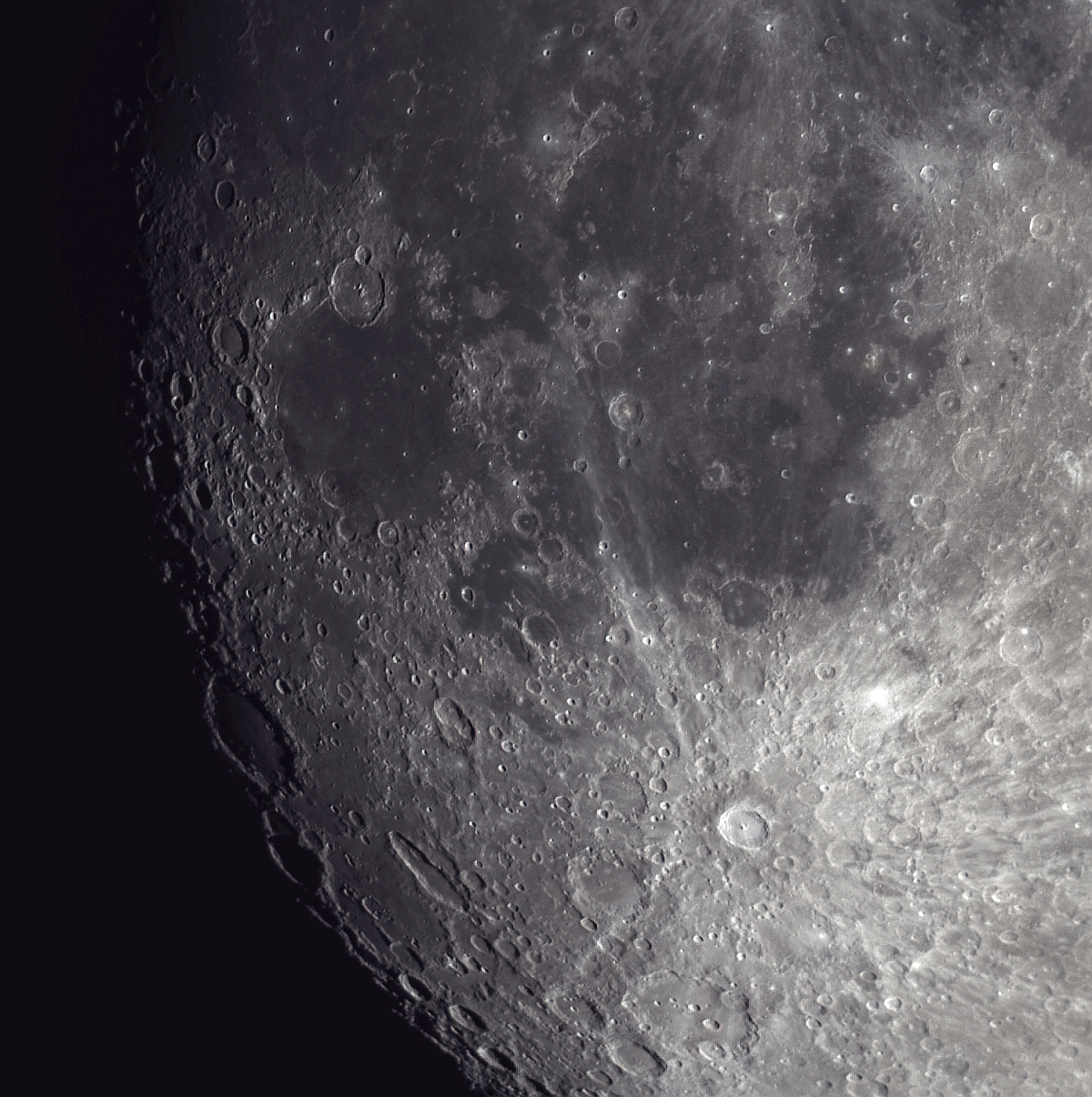 Post-Processing: ich stakke die Videos zuerst mit Autostakkert (Ausgabe in .tiff, Drizzle 1,5, Auto-Stretch), danach bearbeite ich das .tiff zuerst in Photoshop (z. B. Auto-Korrektur Farbe, dann Tonwerte, Gradienten-Kurve, Helligkeit, Kontrast, Sättigung), dann lade ich das .tiff-Bild in Registax und verwende die Wavelets zum Schärfen, danach wieder zurück in den Photoshop (Kamera RAW-Filter, Rauschreduzierung usw.). Was mir leider gar nicht gelingt, ist dass ich etwas Farbe ins Bild bringe. Jedes Mal wenn ich die Farbregler verwende, ändert sich auch die Farbe außerhalb des Mondes (also des dunklen Himmels).
