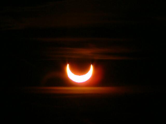 Doch trotzdem hatte ich mich damals an Himmelsobjekten versucht. Da ich auch keine Bilder wegwerfen kann, habe ich noch dieses von der partiellen Sonnenfinsternis vom 31.05.2003 (Crop):