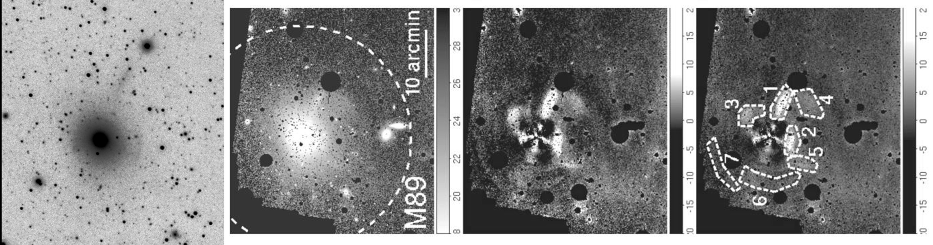 Das Bild zeigt gleich drei Messier Objekte M89, M90 und M58 im Sternbild Jungfrau. Messier 89 ist eine nahe gelegene Eliptische Galaxie, bei der als erstes ein weit reichender Halo entdeckt wurde. Diesen kann man im Bild auch schon leicht erkennen. Messier 90 und 58 sind klassische Balkenspiralen, die deutlich weiter entfernt sind.
