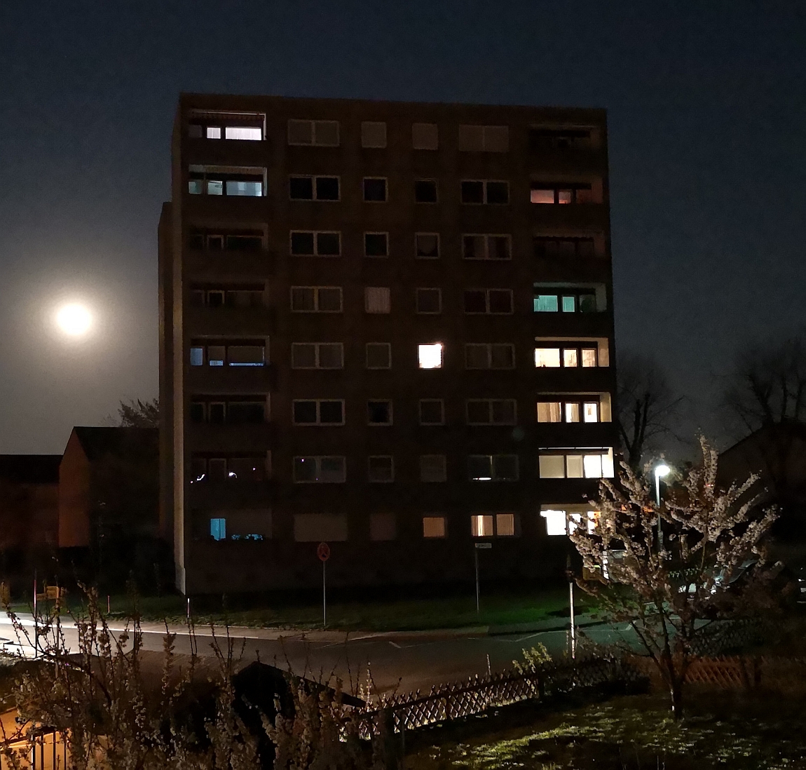 Die Laterne links vom Hochhaus ist der Vollmond. Ihr seht, traumhafte Bedingungen gfgfgf gfgfgf :D