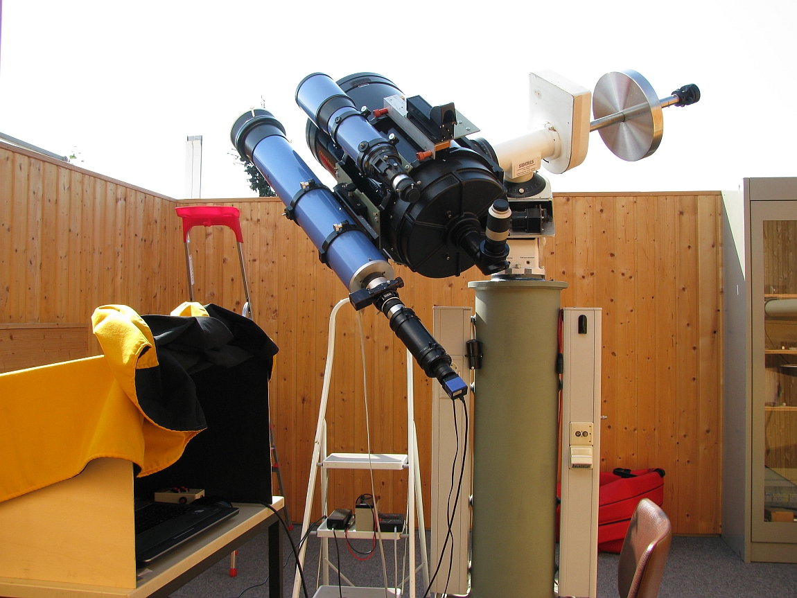 Danke für euer Lob. Das H alpha Bild im Sonnenpart wurde auf der Schulsternwarte in Gudensberg gemacht. Es wurde mit einem der beiden kleinen Refraktoren links neben dem C 14 und einer Atik Kamera gemacht. Wir haben dort mehrere Möglichkeiten. Auch ein PST Filter-Prisma kann an unterschiedlichen Refraktoren angebaut werden. Die Sternwarte ist super gut ausgerüstet, aber leider 30 Km von meinem Wohnort entfernt.
